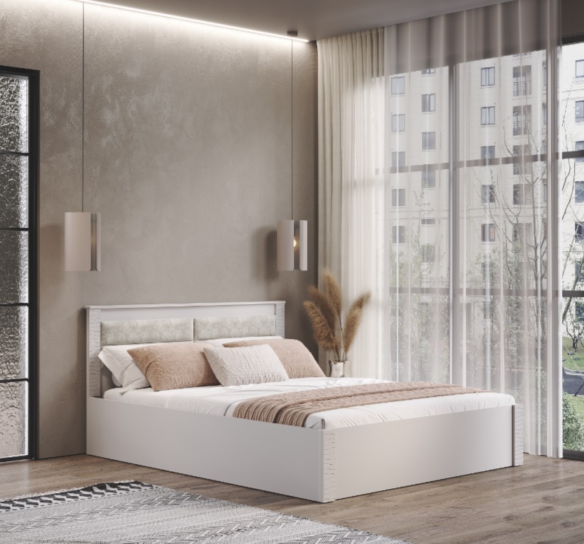 Кровать "Монако" КР-16 1,6 м отличается оригинальным дизайном: мягкая спинка встроена в головной щиток. Фасад украшен декоративными элементами из МДФ.
