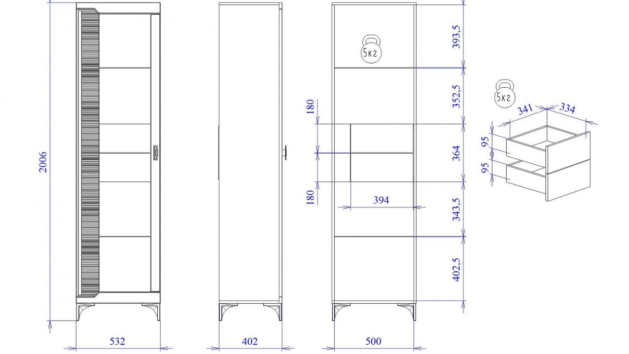 Пенал со стеклом узкий NEW Сиде Белый (СБК)