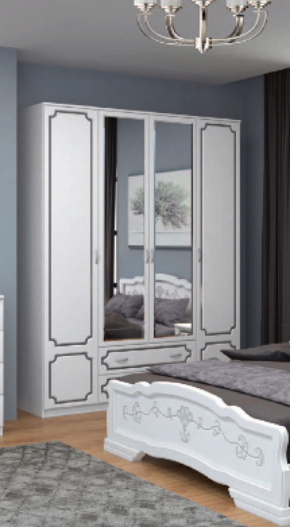 Шкаф ШР-4 с 2 зерк. ЛАКИРОВАННЫЙ Белый жемчуг