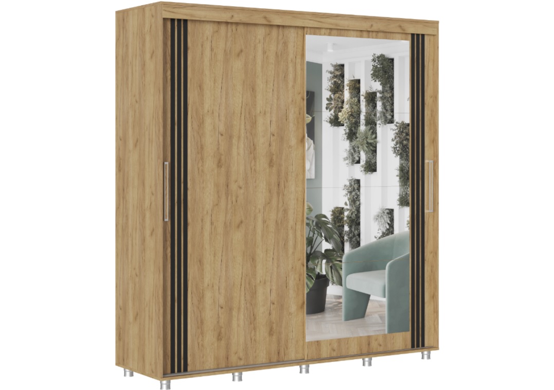 ФОРЕСТ Шкаф-купе 2.0 м. производится с фасадами, выполненными из ЛДСП 16мм. в цвет каркаса, дополнен комплектом зеркал на одной из створок и штапиком-накладкой (6*25 мм) на обеих створках.