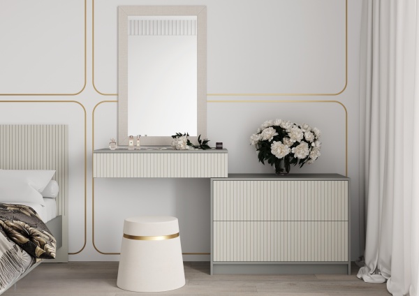 Практичность и стильный, универсальный дизайн этой спальни позволяют гармонично вписаться в любые интерьеры, будь то просторная спальня или компактная студия.