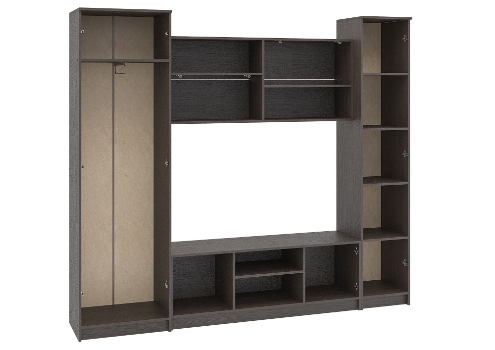 - Гостиная состоит из бельевого шкафа, средней секции и платяного шкафа