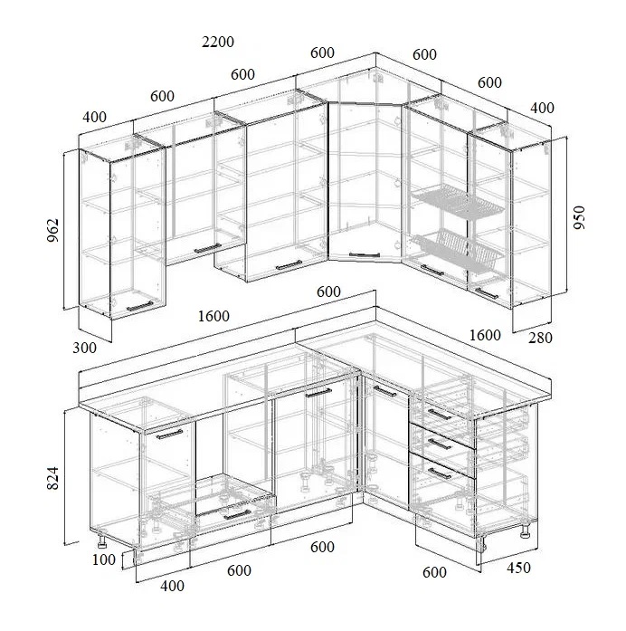 Артикул: A56238Угловой кухонный гарнитур Крафт 2200х1600 мм